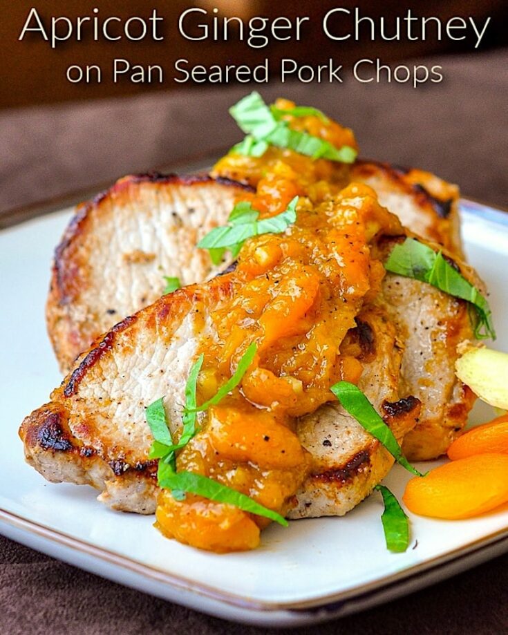 Apricot Ginger Chutney on Pan Seared Pork Chops.