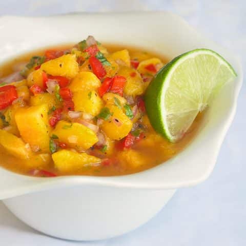 Lime Peach Salsa – a summer fresh recipe to try at the height of peach season. It goes deliciously well with everything from grilled fish to quesadillas!
