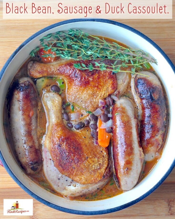 This duck cassoulet recipe with sausage and black beans is an ultimate comfort food recipe for me.