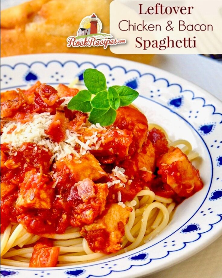 Leftover chicken (or turkey) spaghetti with bacon may be the perfect early week meal, which uses leftovers from Sunday dinner.