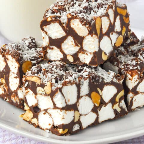 Peanut Butter Rocky Road Bars . A quick & easy, no bake, old fashioned favourite with marshmallows suspended in a luscious combination of peanut butter and chocolate; with the crunch of roasted peanuts too, if you like.